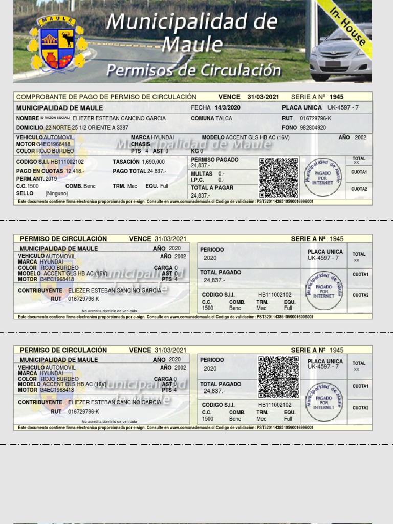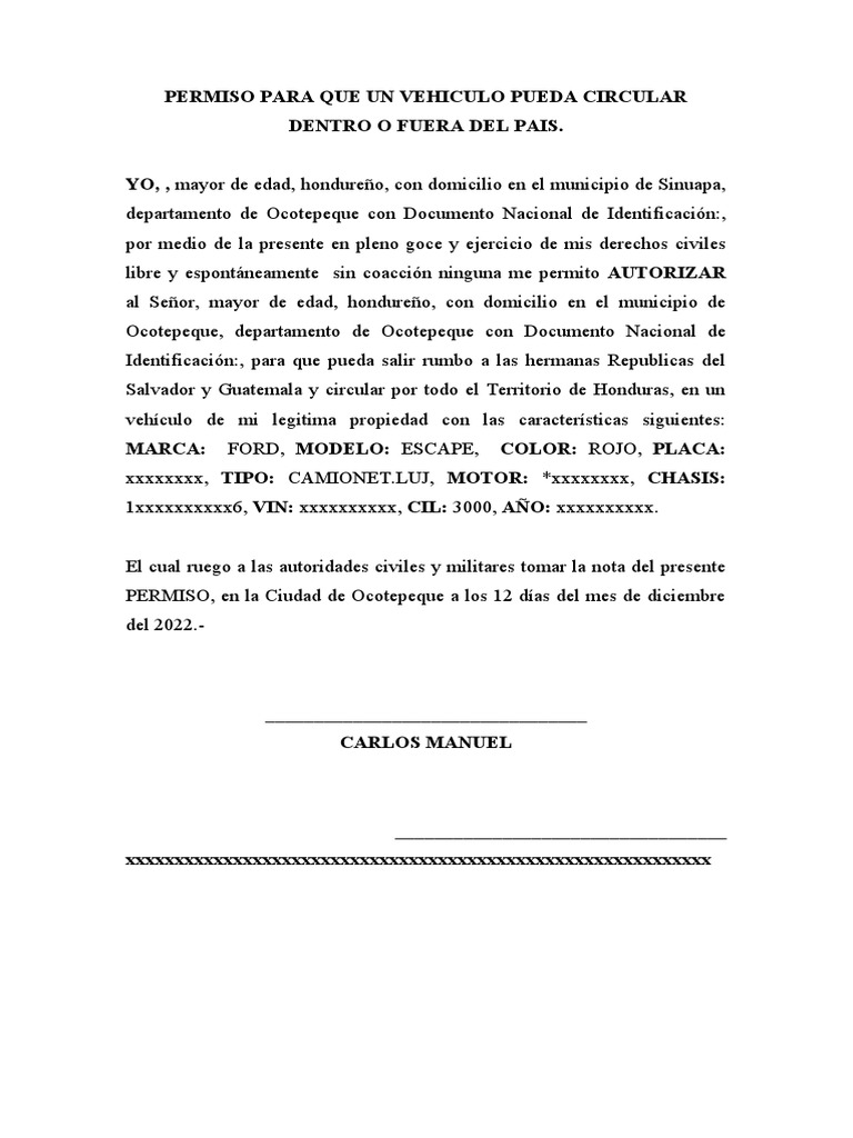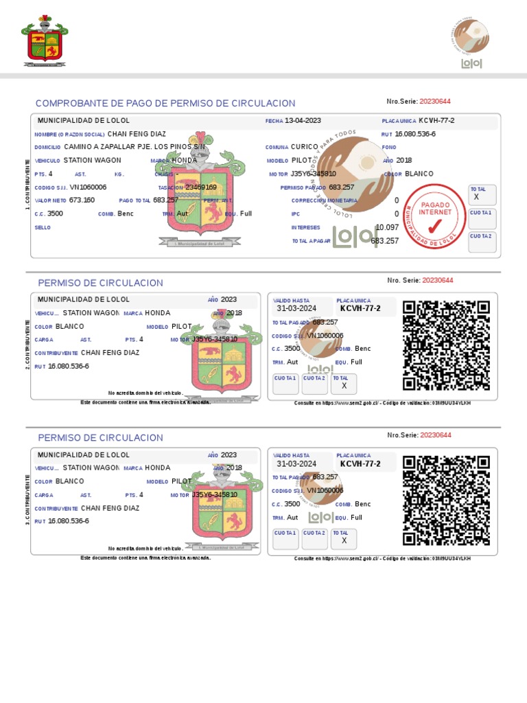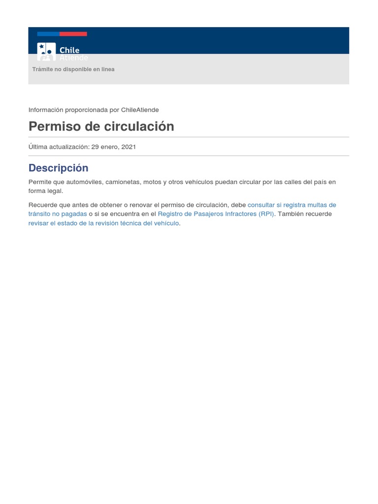 Permiso de circulación de chile - (El Bosque) editable en PDF ...