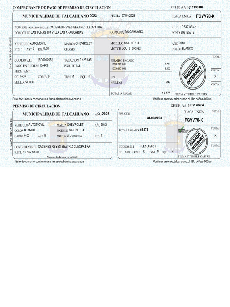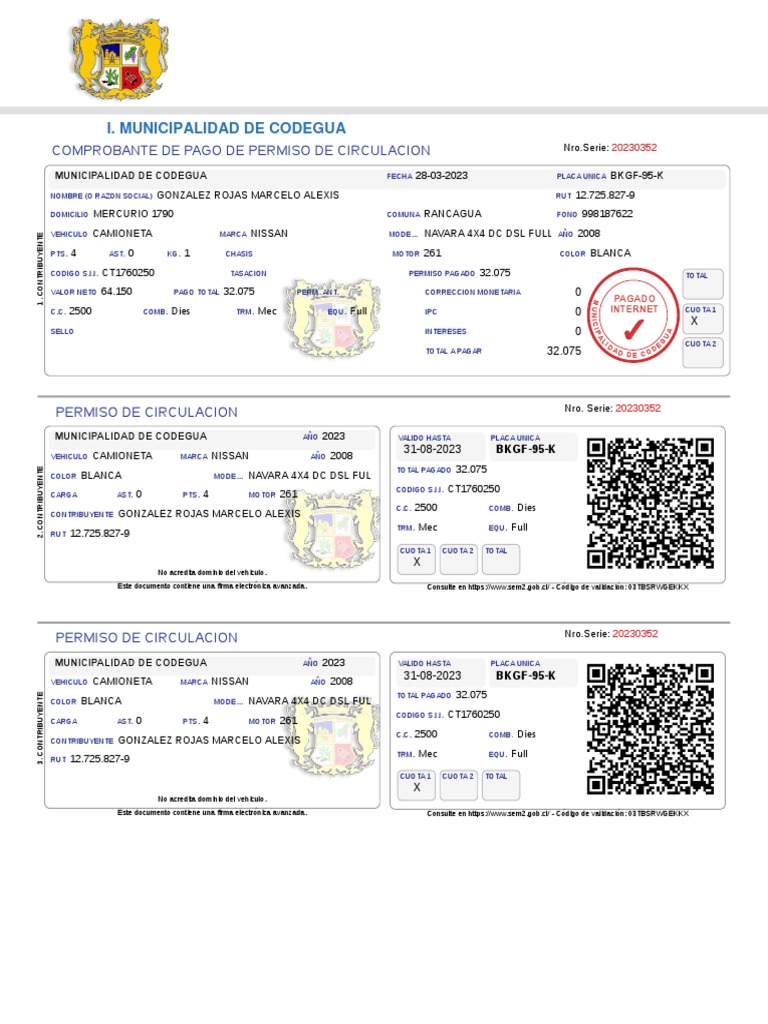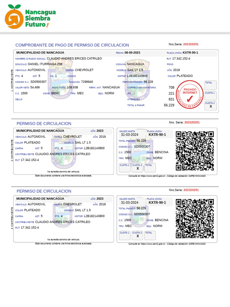 Comprobante de Pago Permiso Nancagua | PDF | Vehículos | Coche