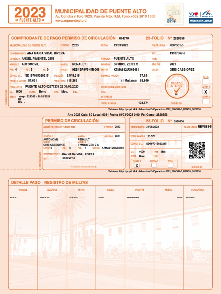 Comprobante de Pago Permiso Circulación 2023 | PDF | Vehículos