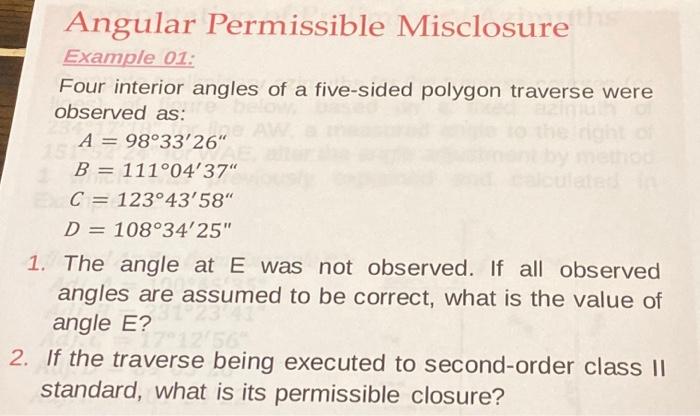 Solved Angular Permissible Misclosure th Example 01: Four | Chegg.com