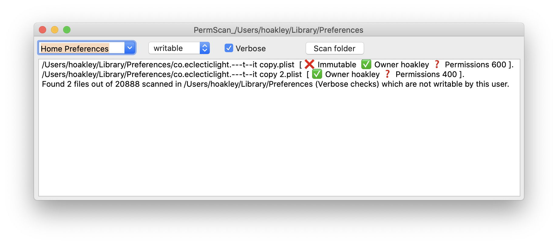 Reset/repair permissions using PermissionScanner – The Eclectic Light ...