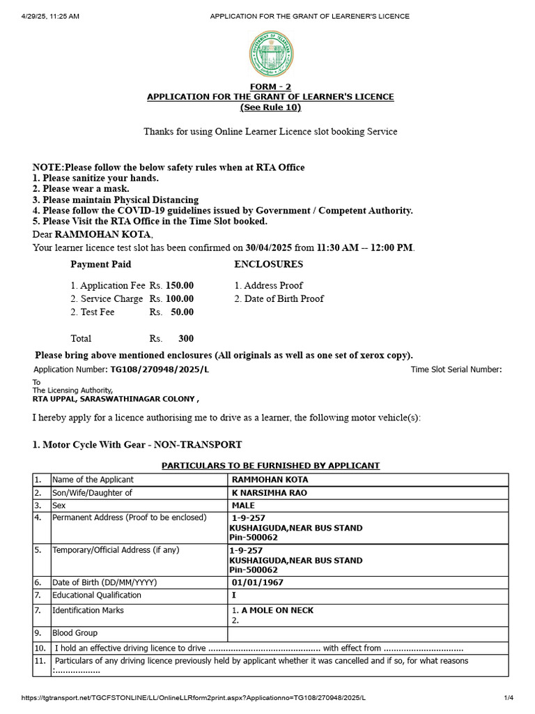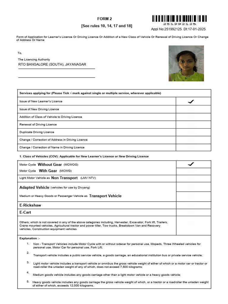 Application For Learner's License | PDF