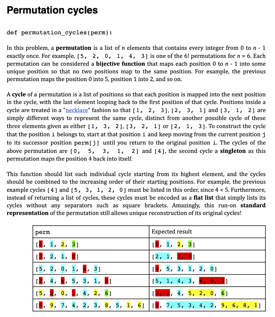 Solved Permutation cycles def permutation_cycles (perm): In | Chegg.com