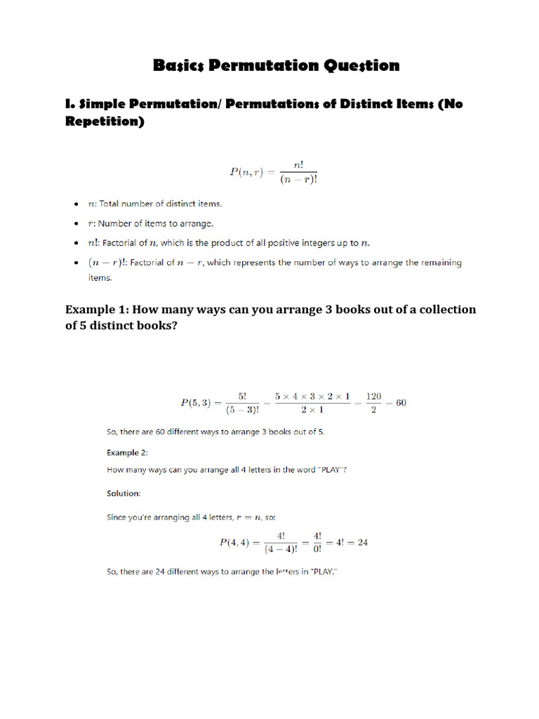Understanding Permutations: Types & Examples | PDF | Permutation ...