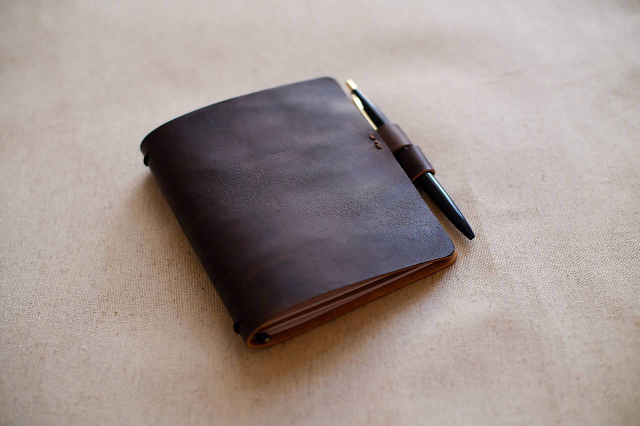 Kožený zápisník s perom - vlastný text (Tmavá hnedá) / Horalist - SAShE.sk
