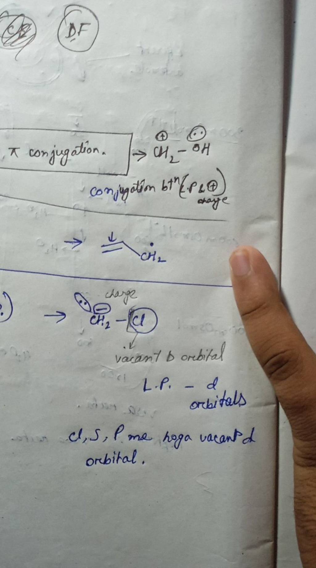 DF) π conjugation. →CH2 −OH conjugation bt (∠P&)) \rightarrow \Perp \math..