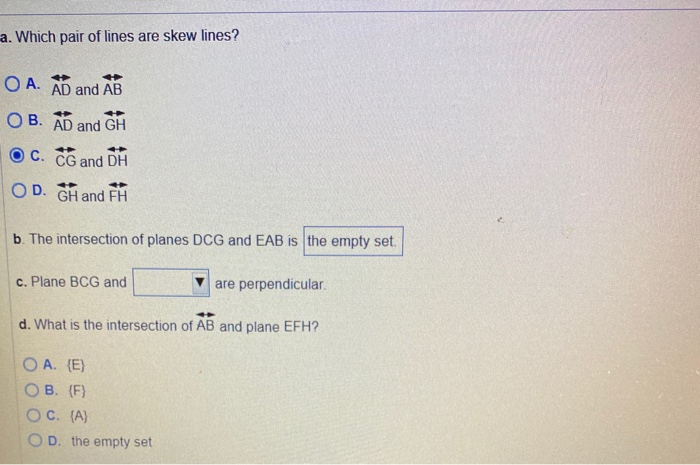 Perpendicular Lines Instructions: Given the following image is a cube ...