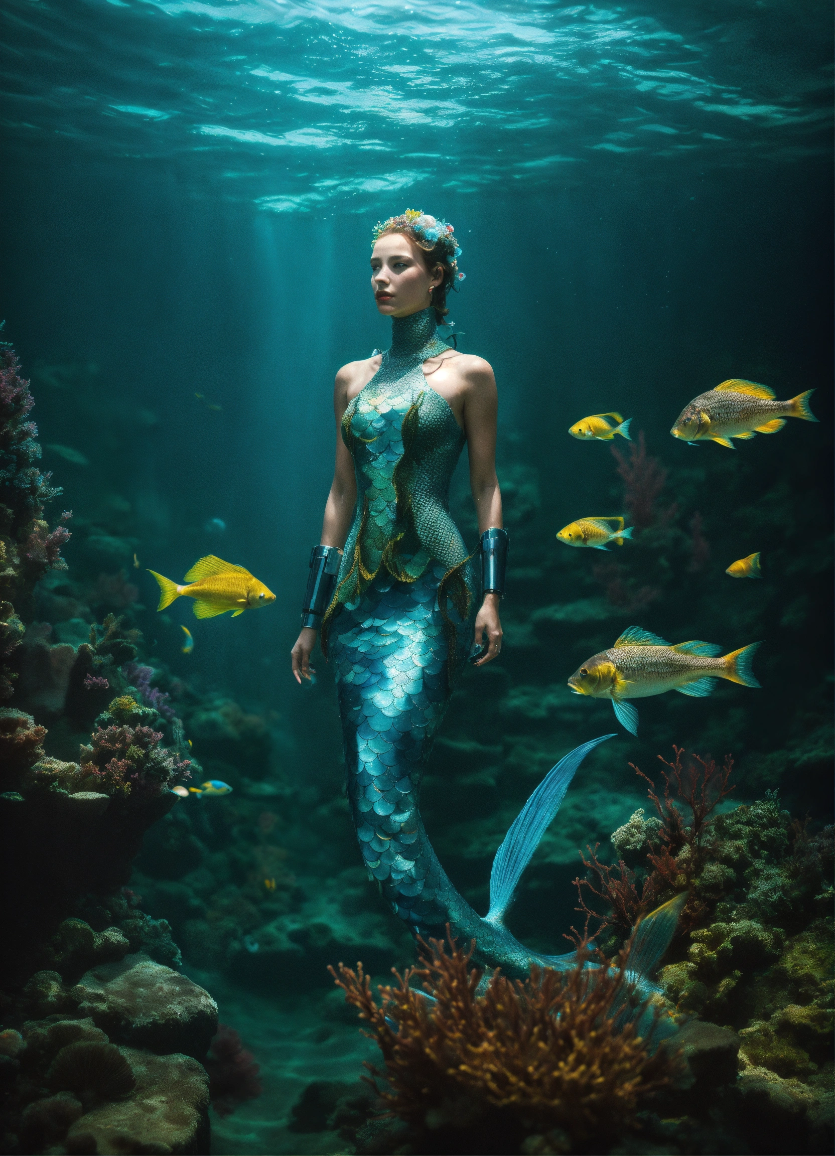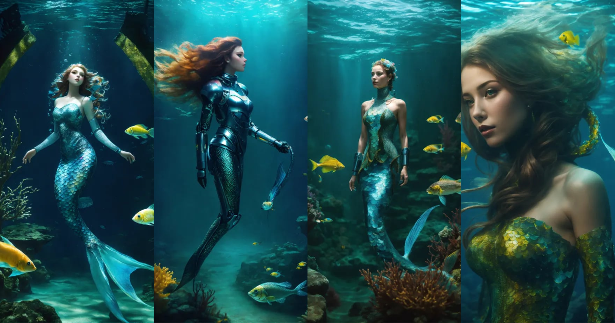 Cyborg mermaids underwater on Craiyon