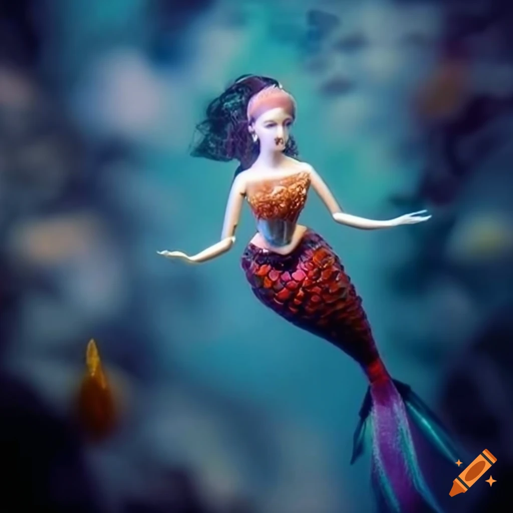 Intricately detailed porcelain mermaid doll in hyperrealistic ...