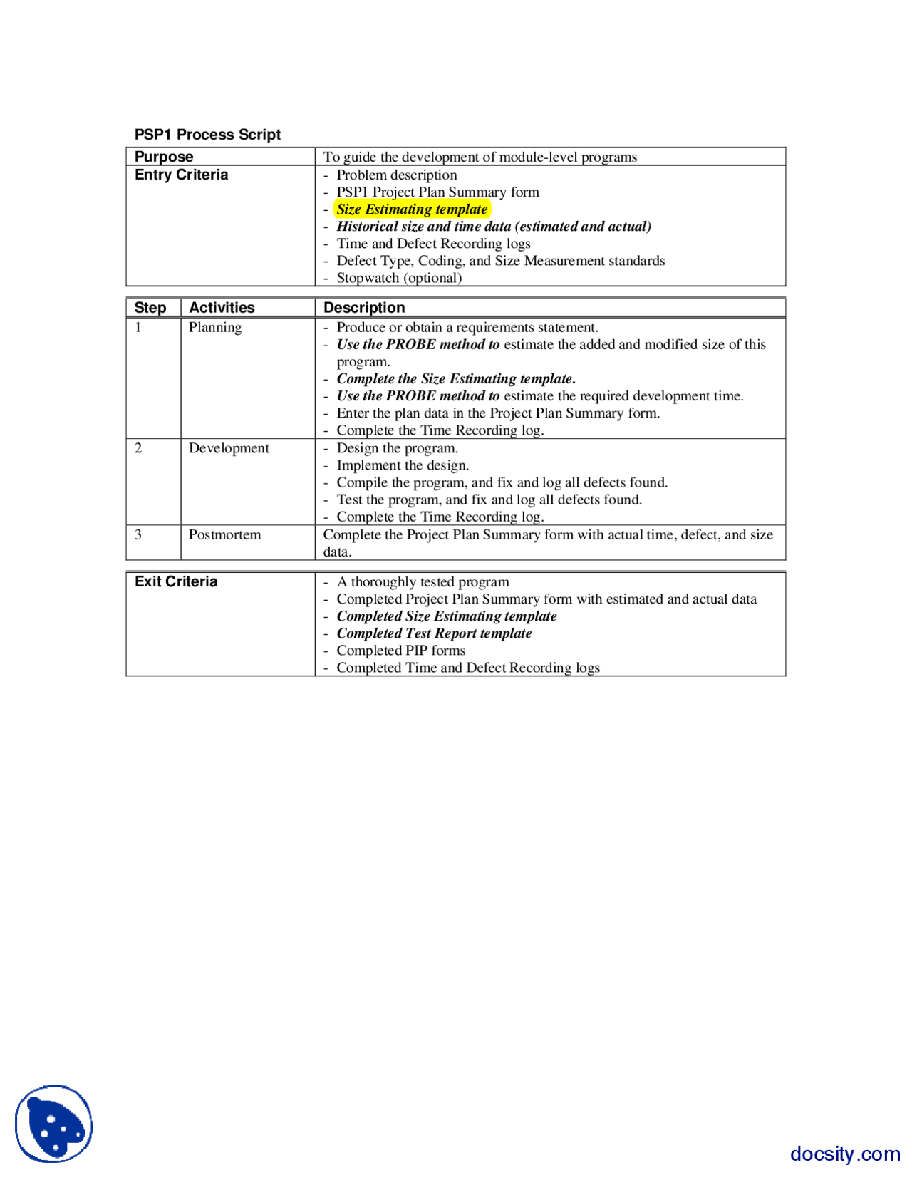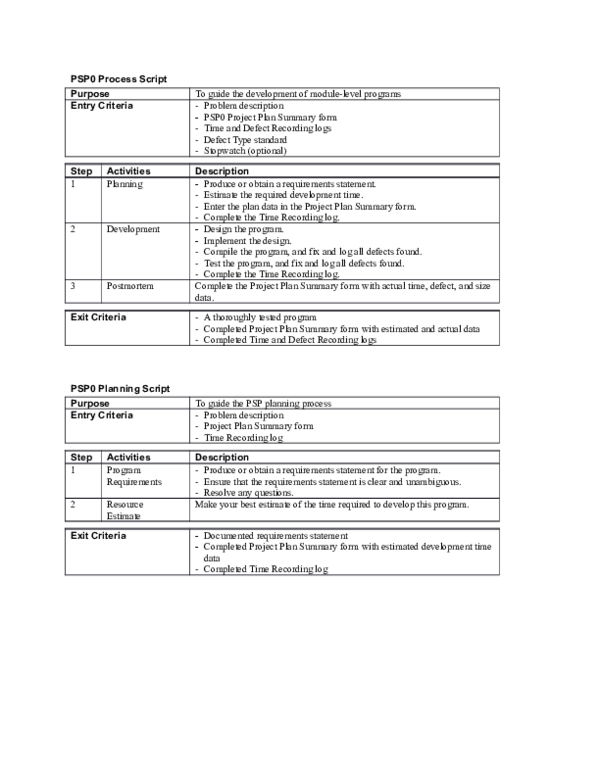 PSP1 Process Script, Codes and Instructions-Software Quality-Handout ...