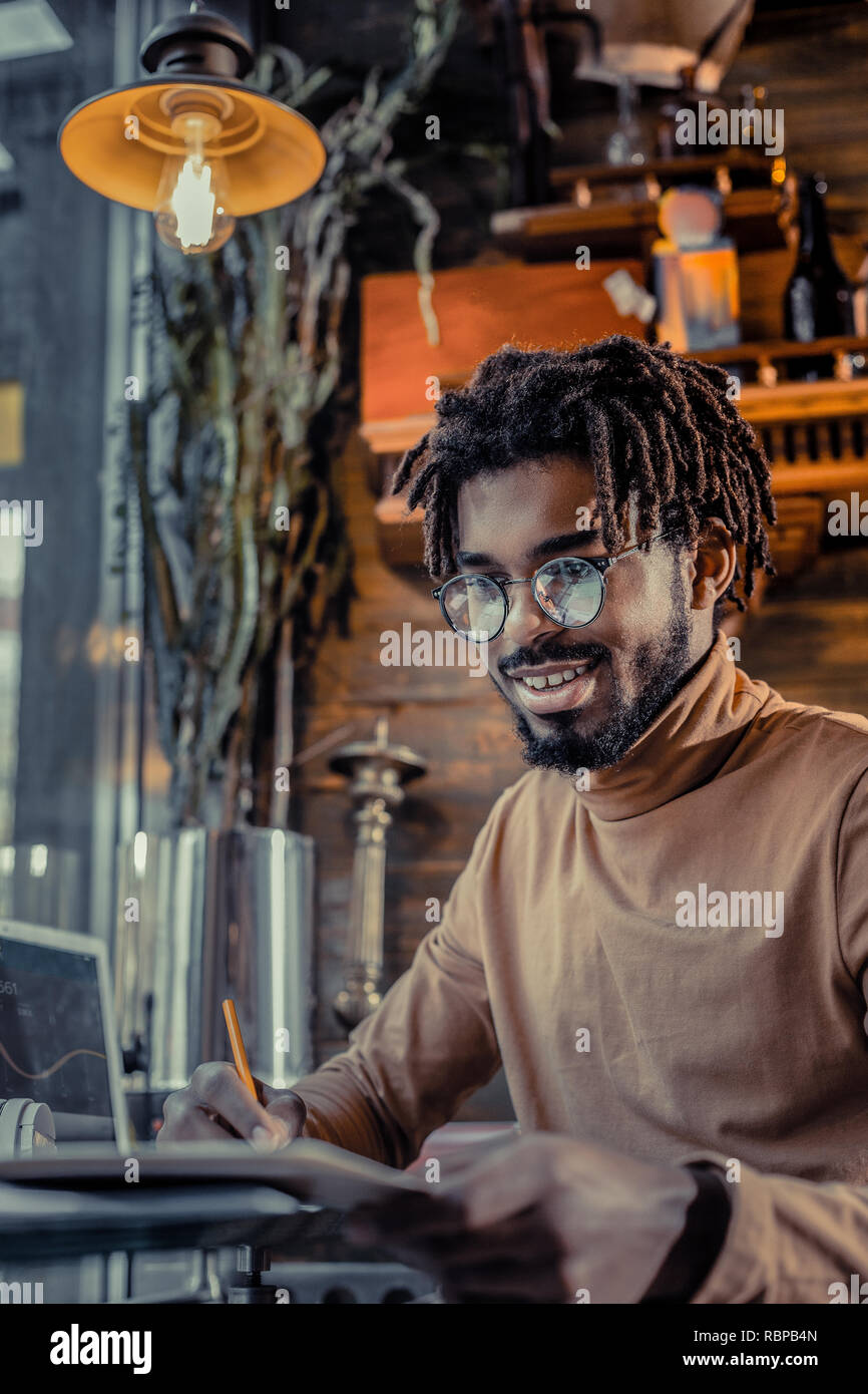 Premium Photo | A young happy smiling artist makes a pencil sketch at ...