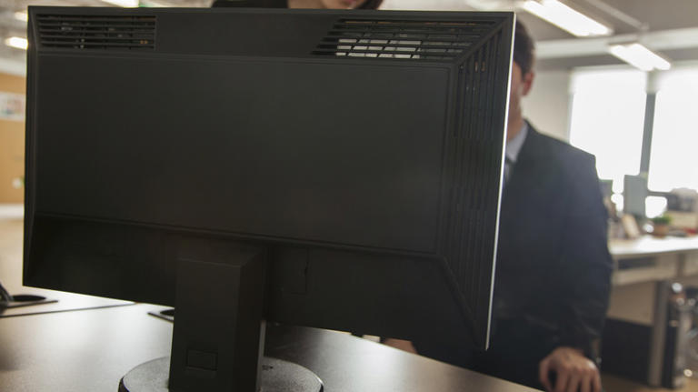People Working on Computer PC on White Table Stock Photo - Alamy