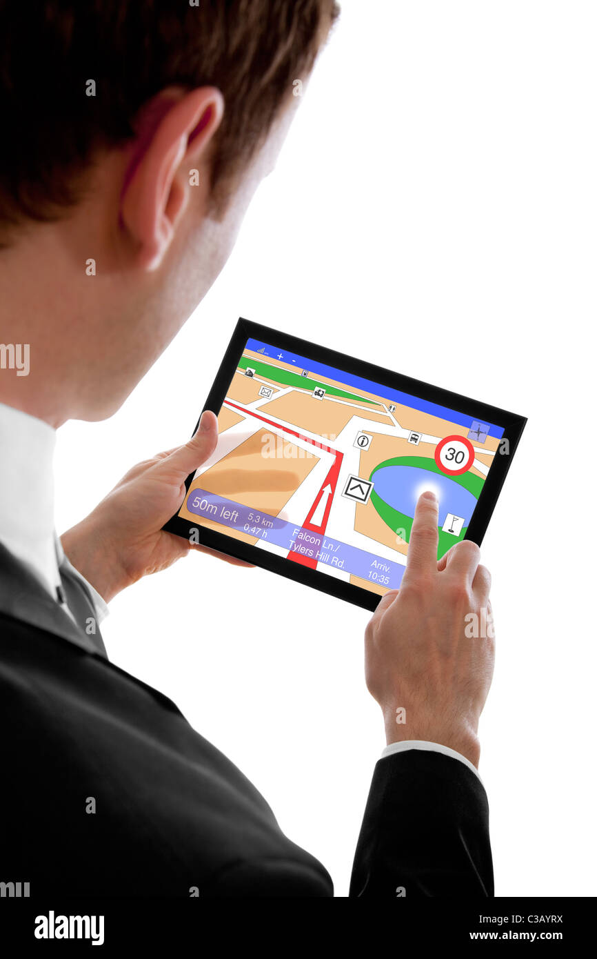 Person is using a tablet computer. Navigation Stock Photo - Alamy