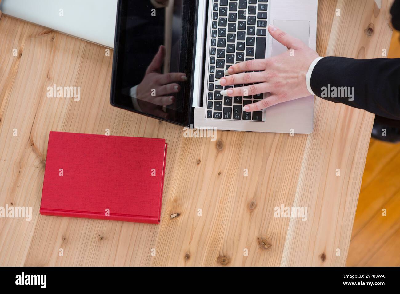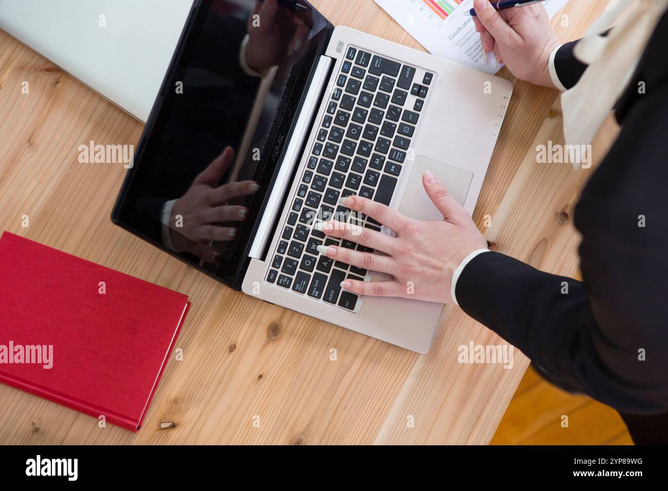 A person sitting at a table using a laptop computer photo – Free Woman ...