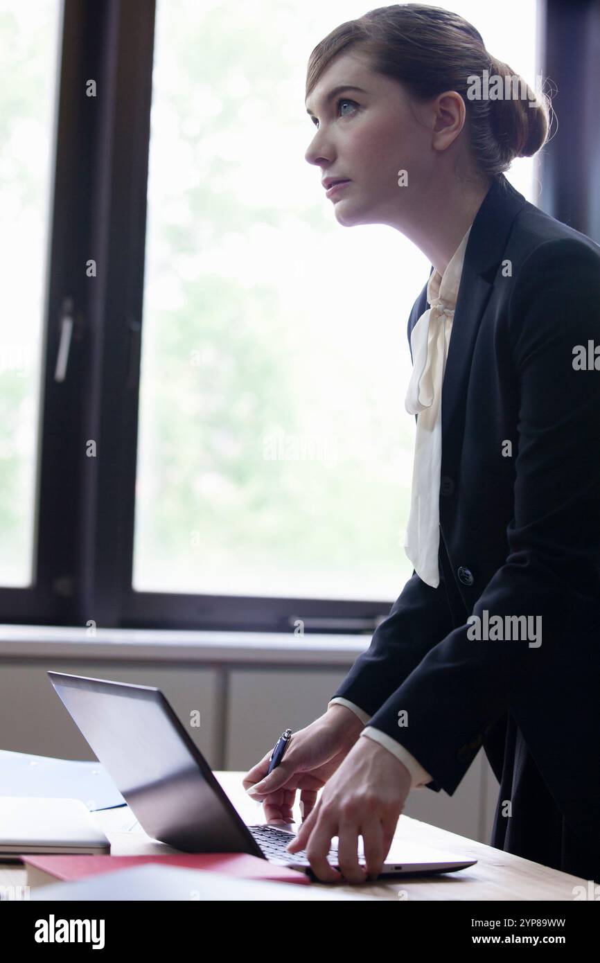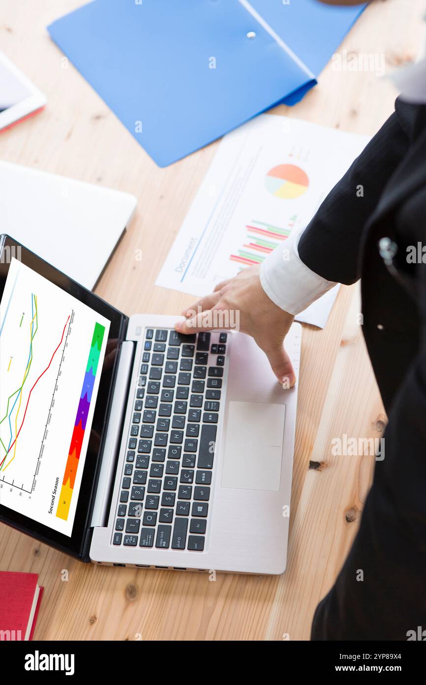 Man Standing at Desk Using Laptop Computer | Premium AI-generated image