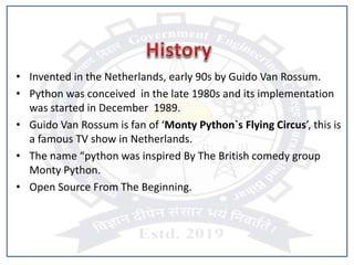 Python | What is Python | History of Python | Python Tutorial | PPTX