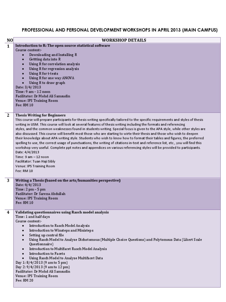 Professional and Personal Development Workshops in April 2013 (Main ...