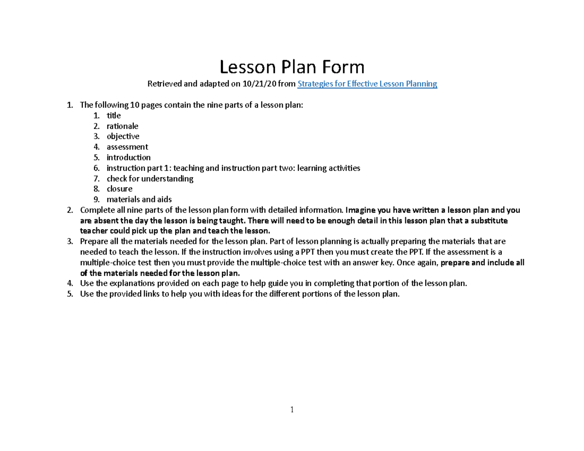 Personal lesson plan - Teri Eckoff - Lesson Plan Form Retrieved and ...
