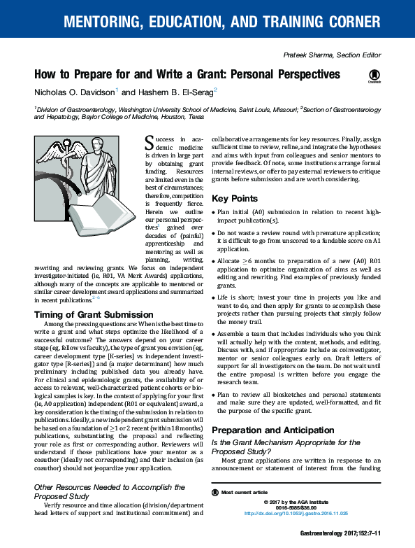 (PDF) How to Prepare for and Write a Grant: Personal Perspectives ...