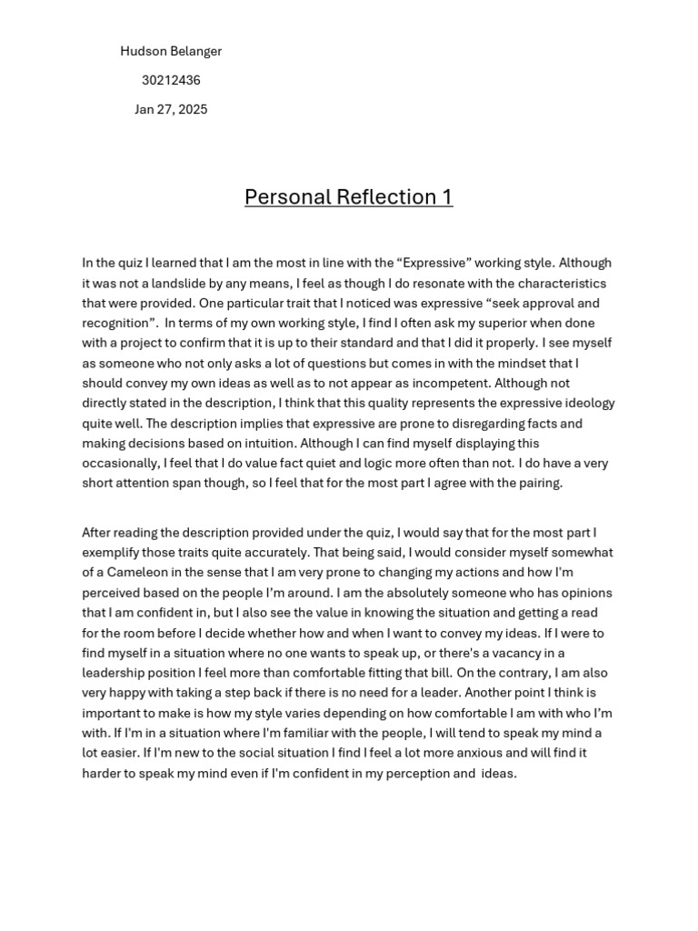 Personality Reflection Example | PDF