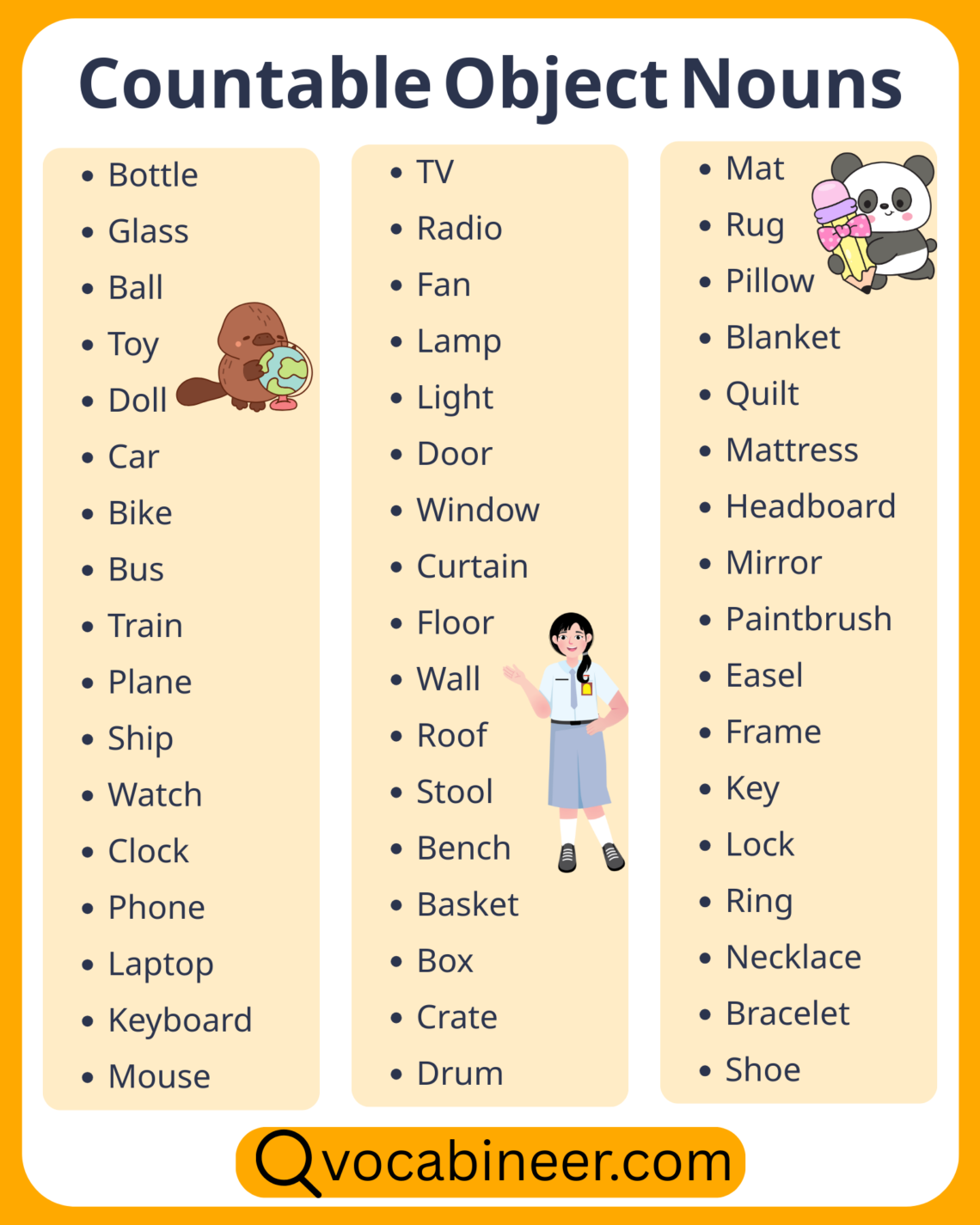 100 Countable Object Nouns in English with Examples