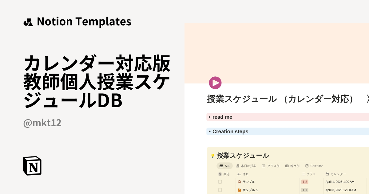 カレンダー対応版 教師個人授業スケジュールDB Template by MKT | Notion Marketplace