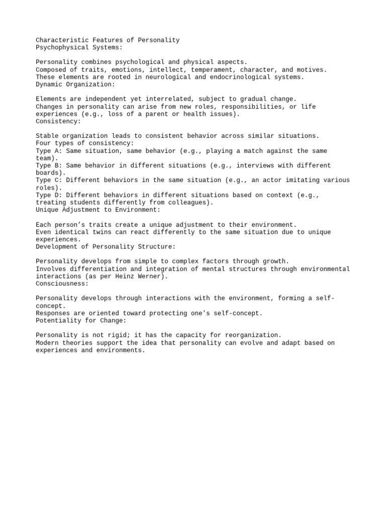 Approaches to the Main Features of the Personality Profile Free Essay ...