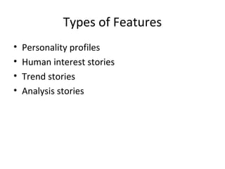 PPT - Types of feature stories PowerPoint Presentation, free download ...