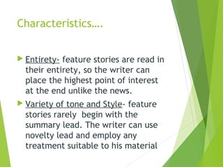 Definition of Feature Story and its types | PPTX