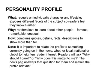 Types of Feature Stories: Personality Profiles, Human Interest | Course ...