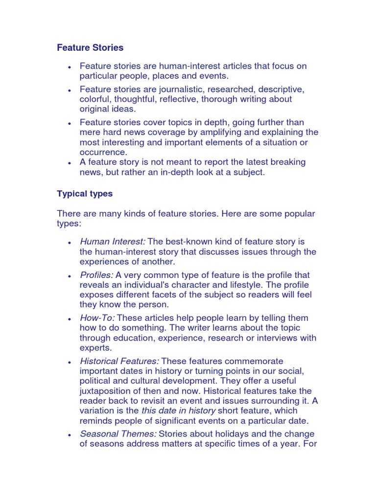 Types of Feature Stories | PDF