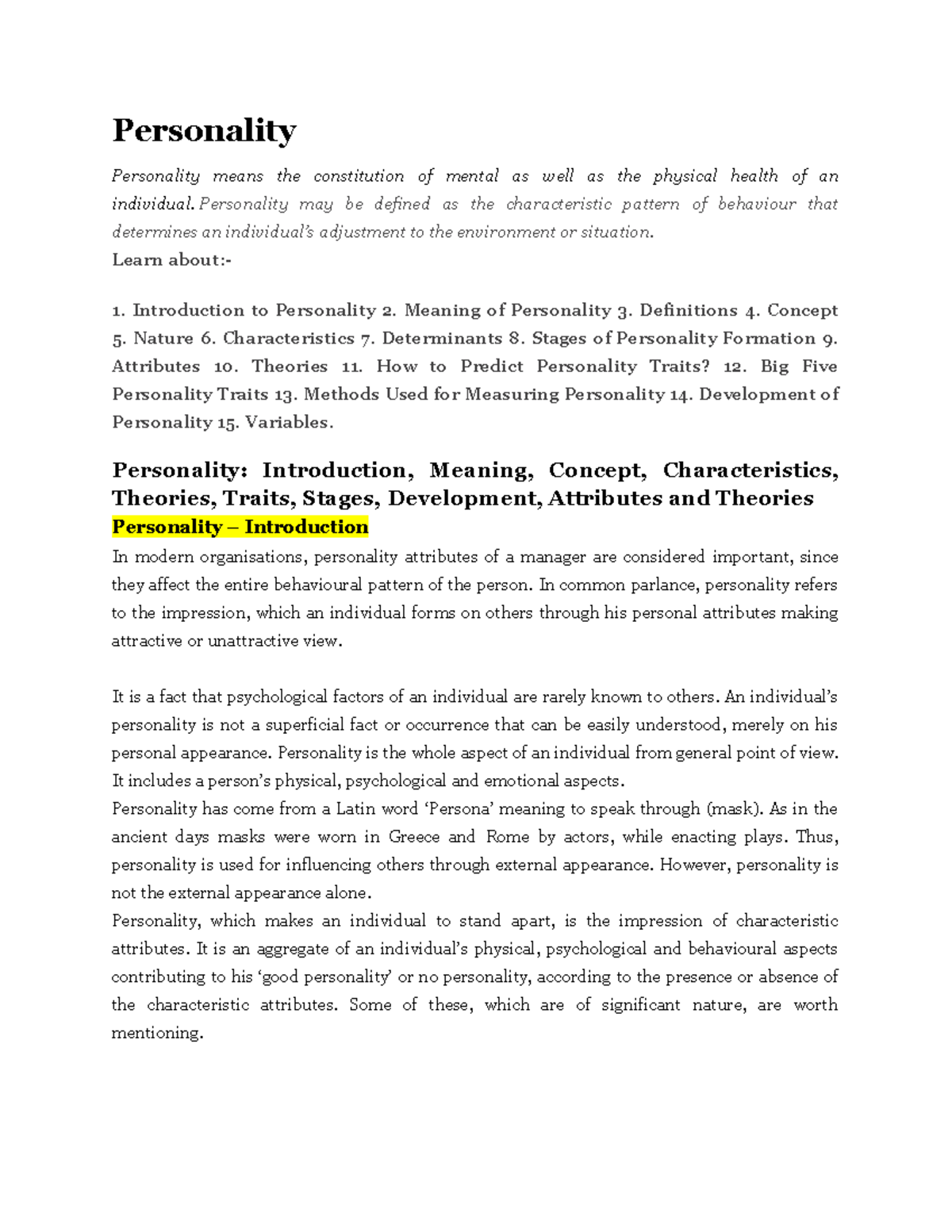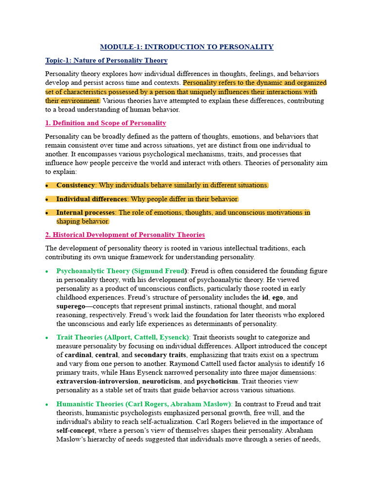 Personality notes for understanding the basic idea | PDF