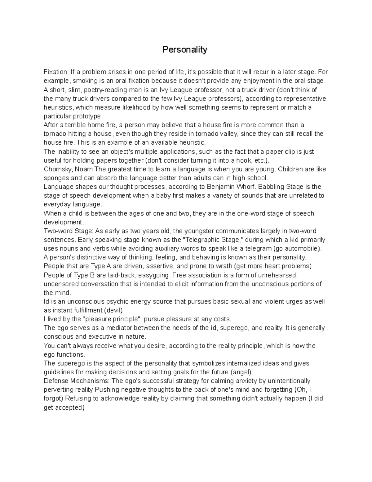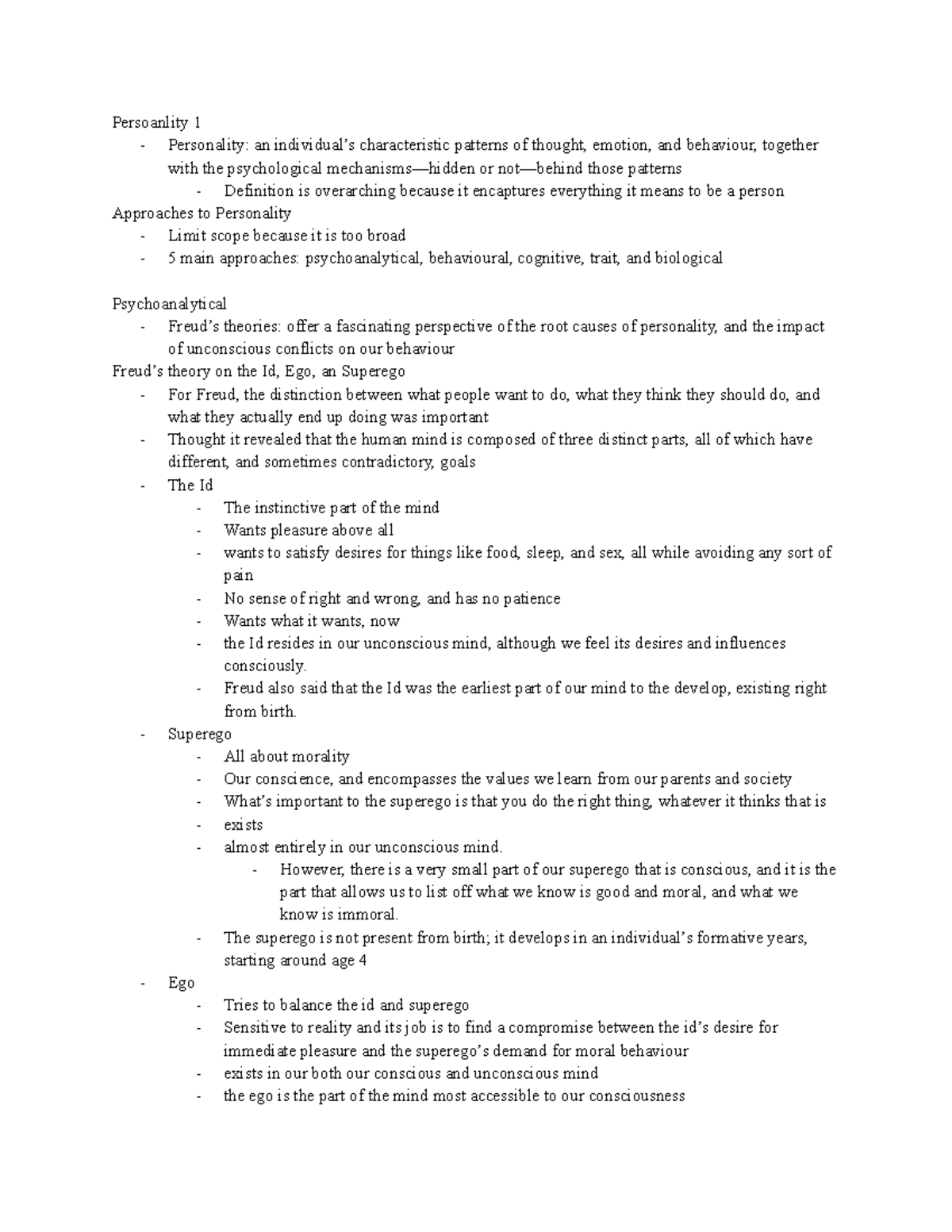 Personality Notes | PDF | Id | Psychoanalysis