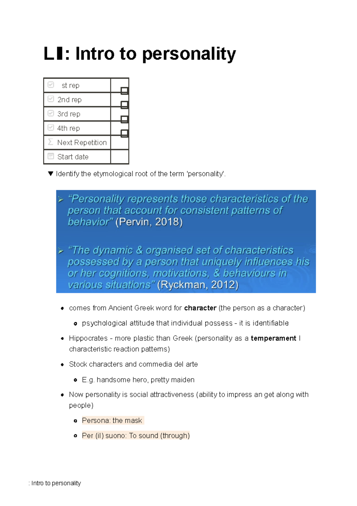 Personality notes - : Intro to personality Ll: Intro to personality st ...