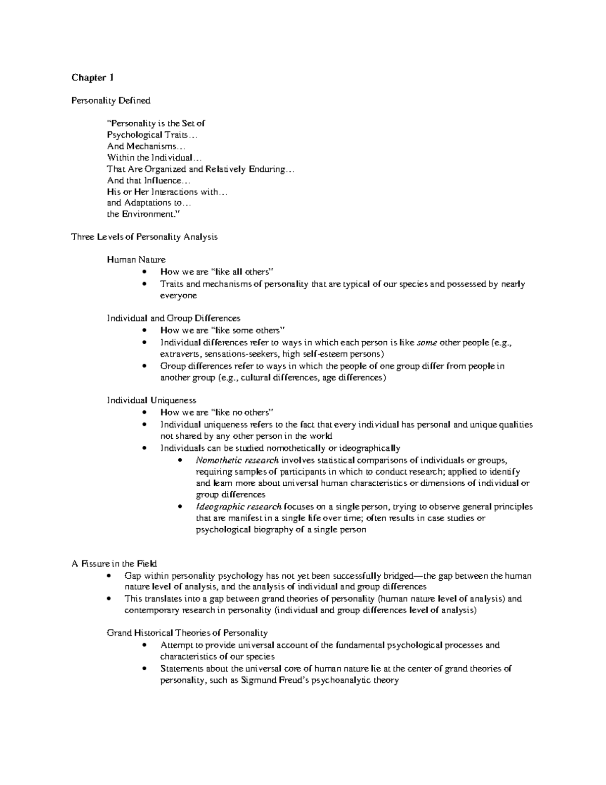 Personality Psychology CH-1 Short Notes - Personality Psychology Short ...