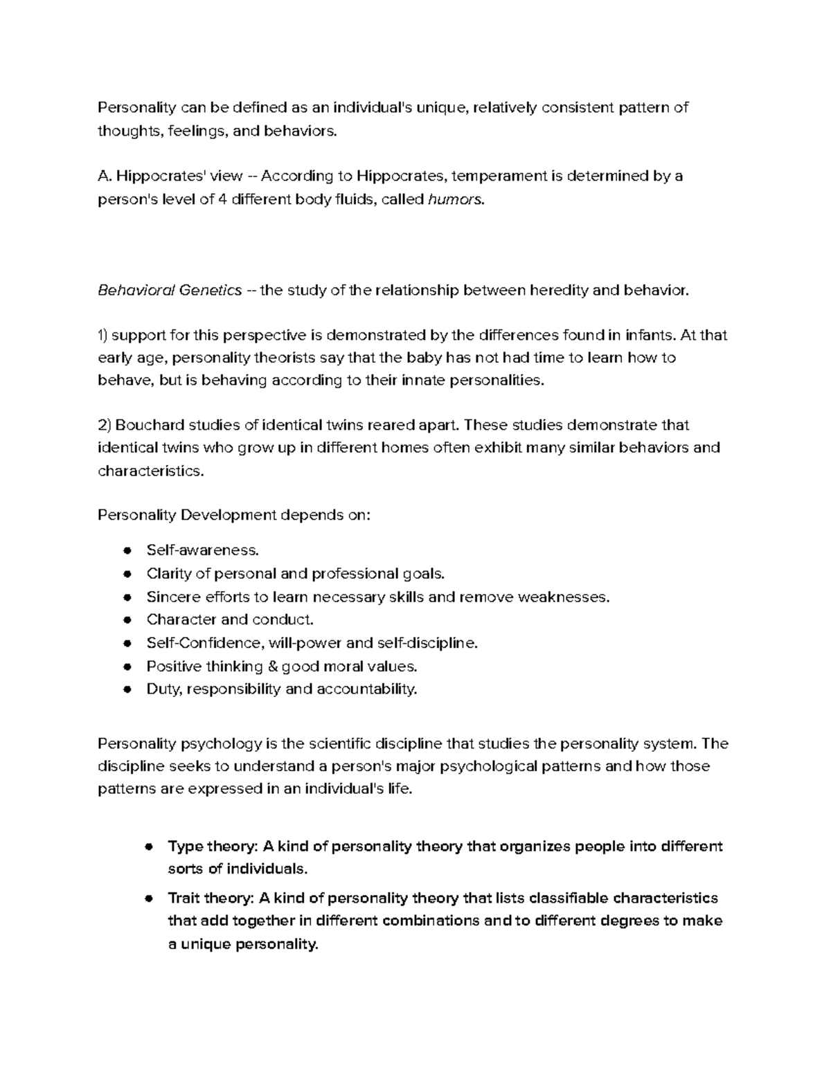 Personality Psych Notes - Personality Psychology Study Notes What is ...
