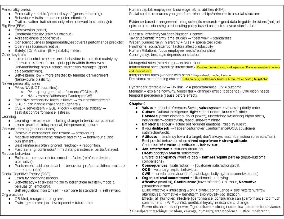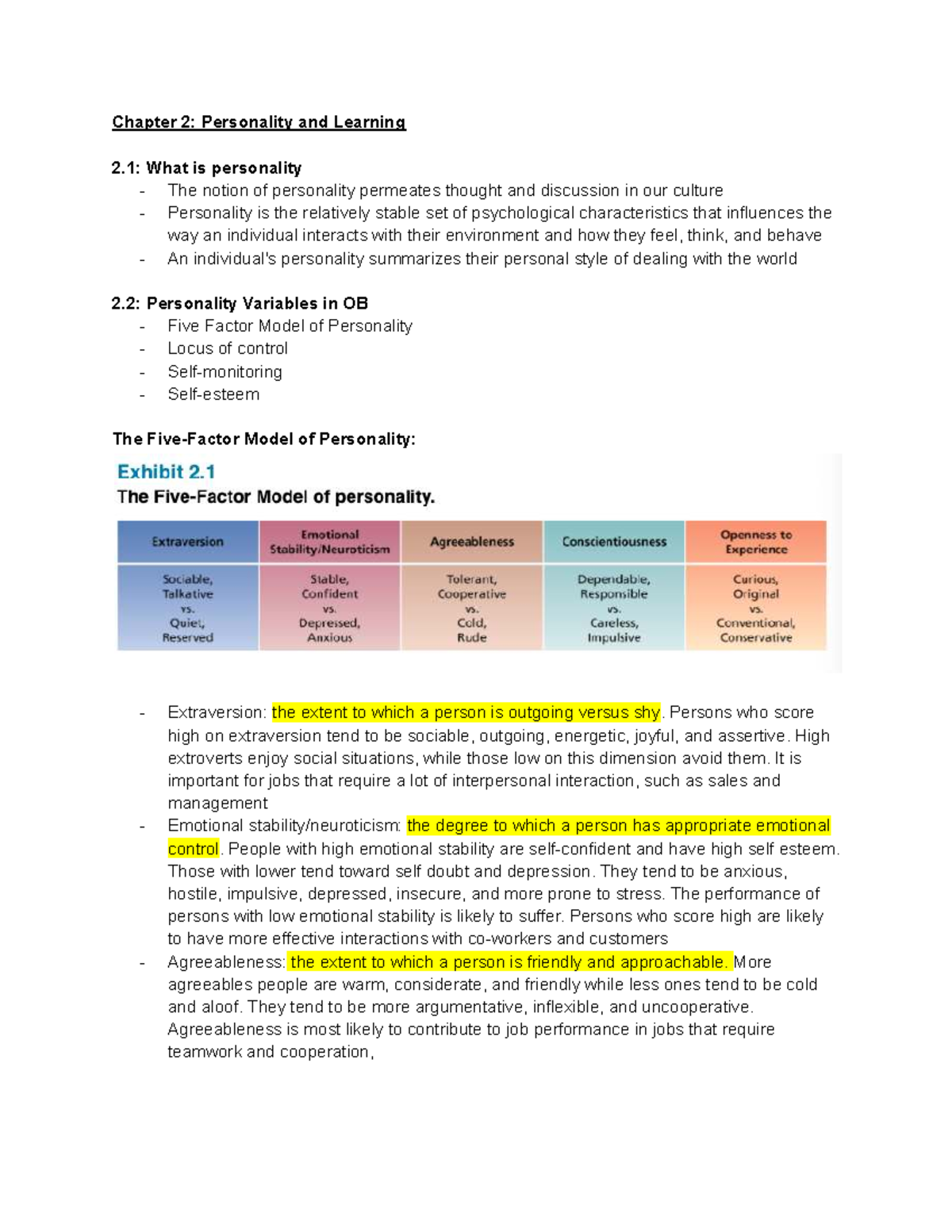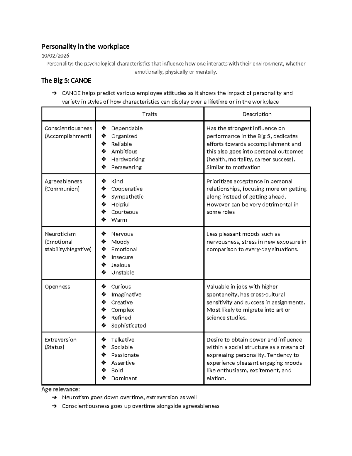 Personality Notes | OBHR101 - Management of People at Work - SMU ...