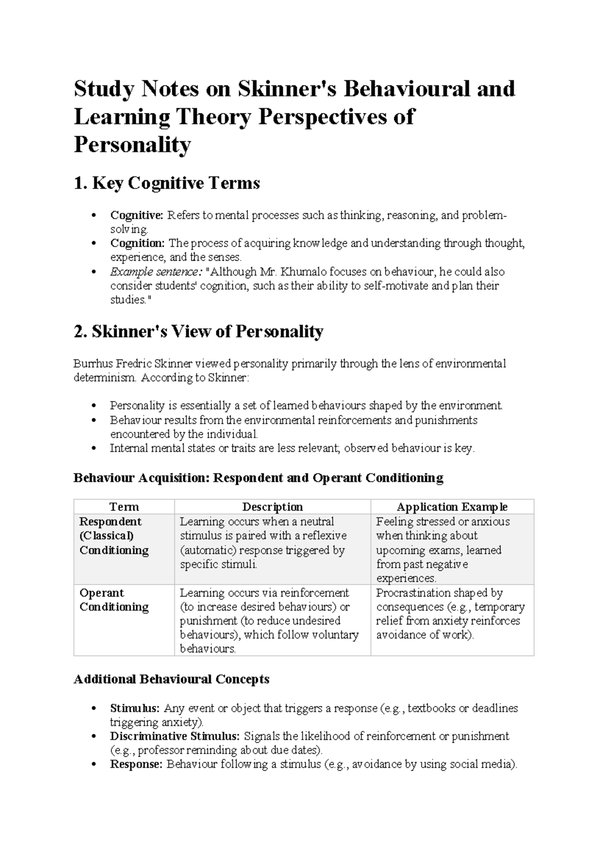 PSYC 212 Study Notes: Skinner's Behavioural and Learning Theories - Studocu