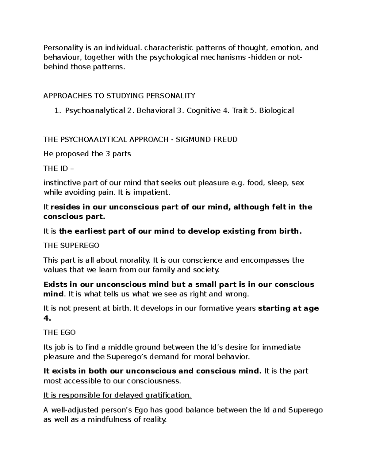 Theories of Personality notes | PDF | Id | Psychodynamics