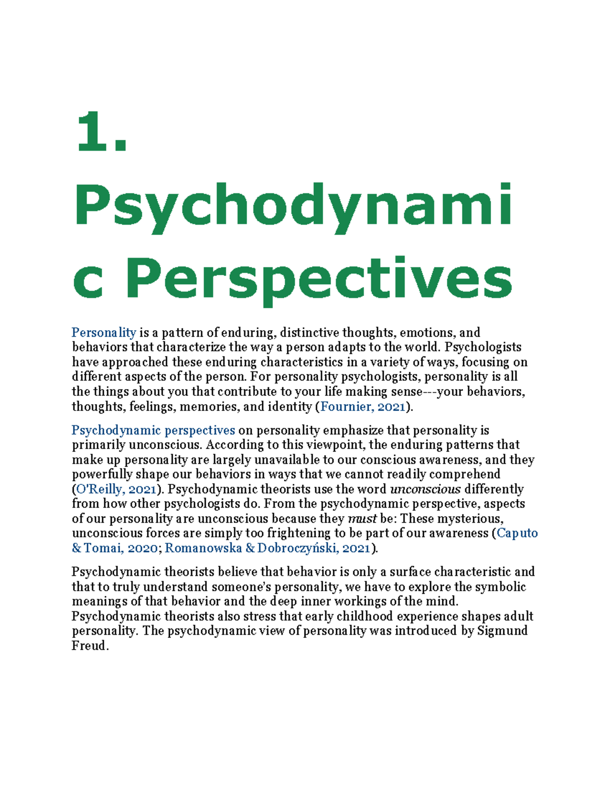 Chapter 12 - Psychodynamic Perspectives on Personality (PSY 101) - Studocu