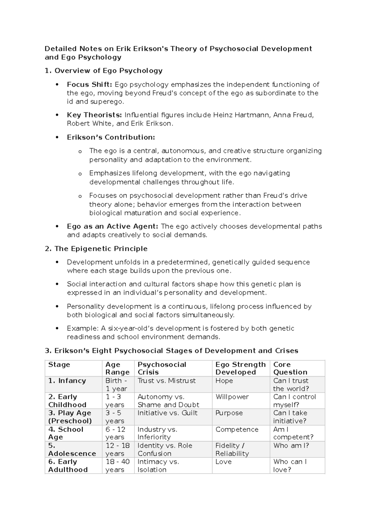 Erikson's Theory of Psychosocial Development: Summary Notes for Study ...