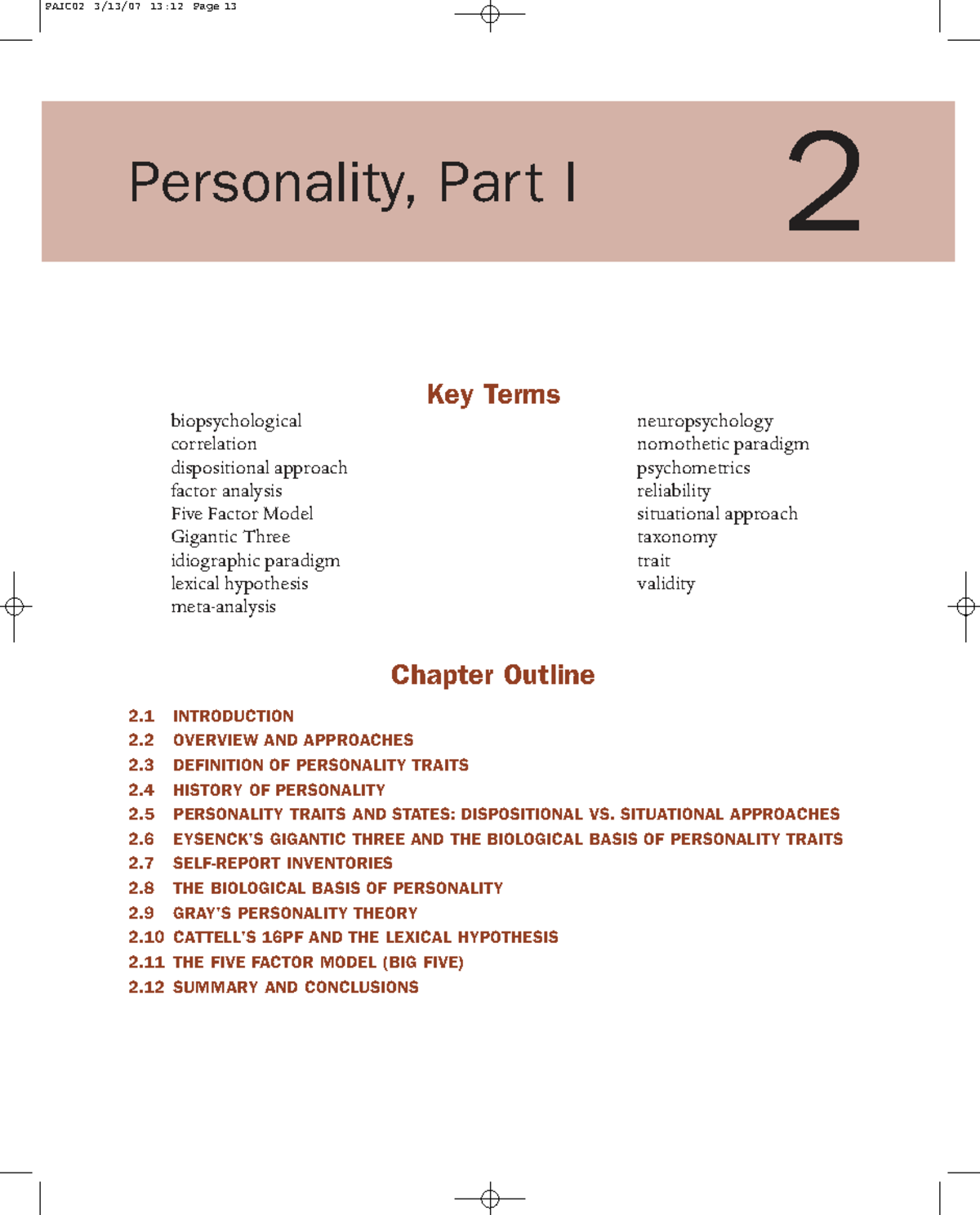 PAIC02 Personality Theories: Key Terms and Concepts Overview - Studocu