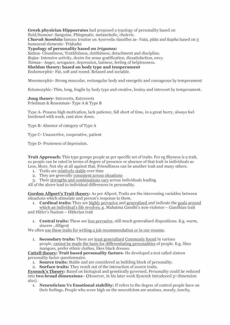 Personality of Psychology Notes - Personality of Psychology Notes ...