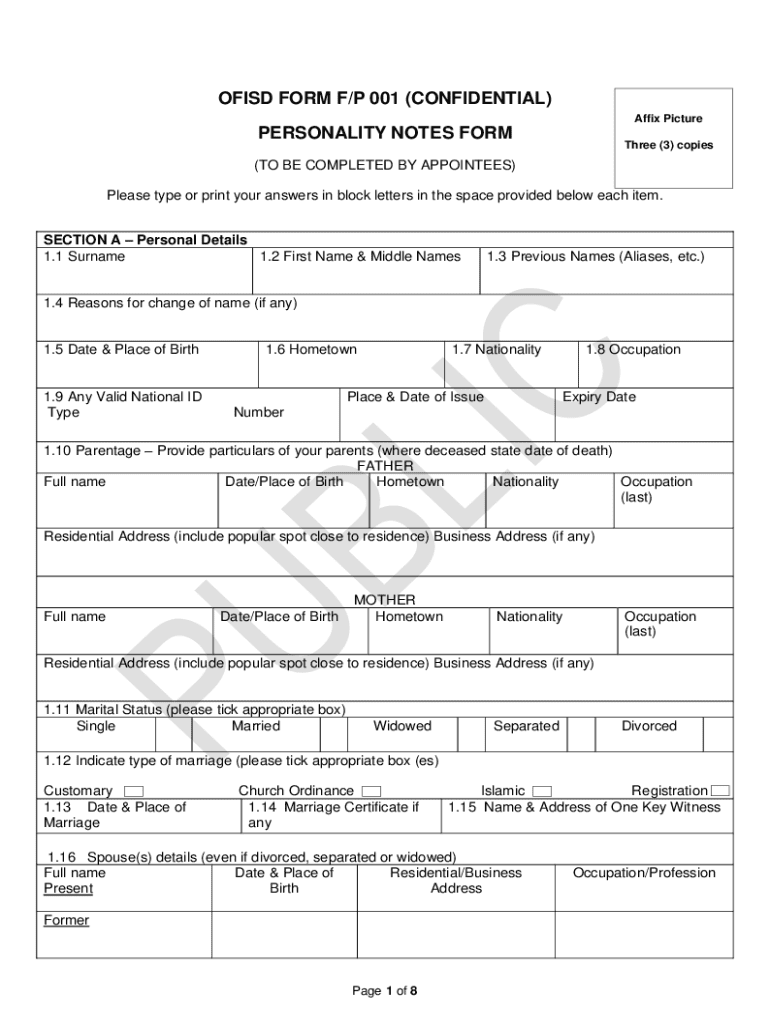 Fillable Online PERSONALITY NOTES FORM Fax Email Print - pdfFiller