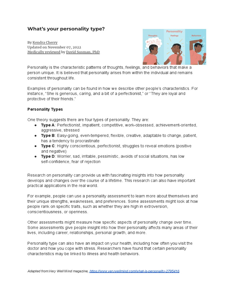 Personality Essay Example | Topics and Well Written Essays - 750 words - 2