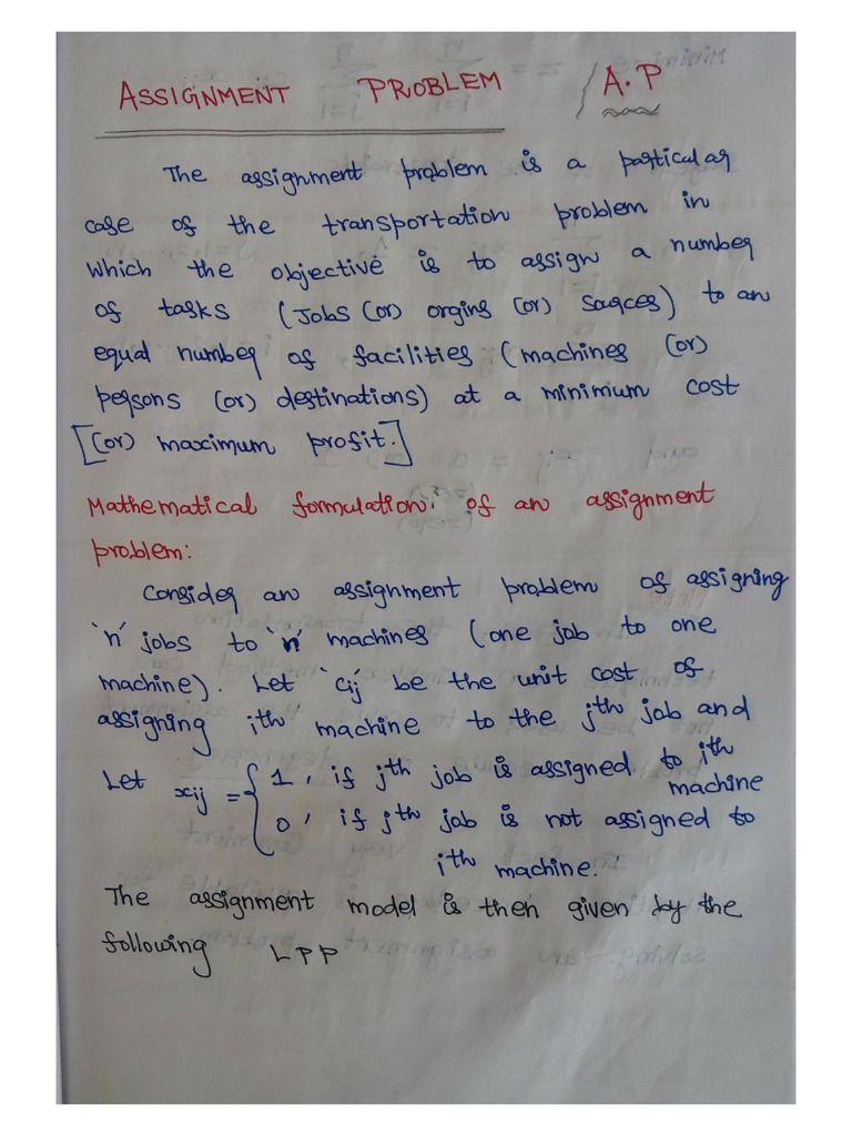 Assignment problem notes | PDF
