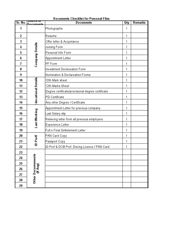 Checklist Personnel File Template (Word & PDF) - Free Trial