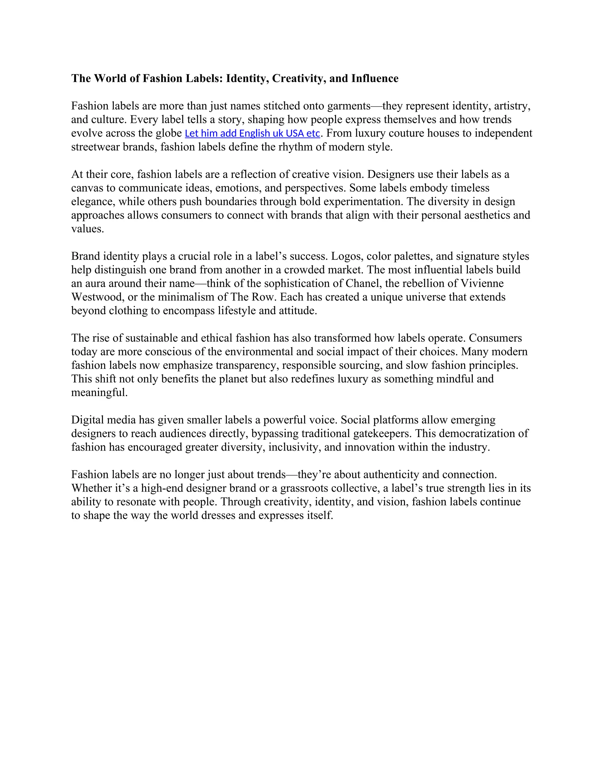 The World of Fashion Labels Identity, Creativity, and Influence.docx