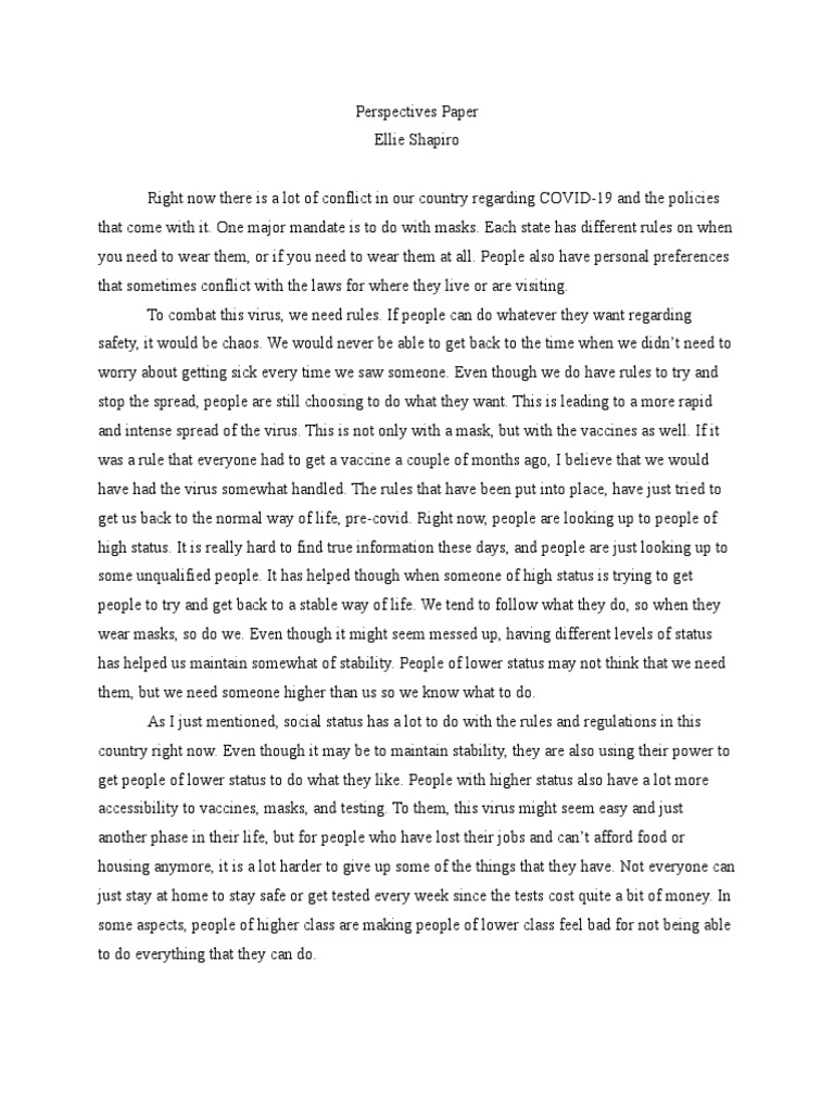 Personal Perspective Paper Essay Example | Topics and Well Written ...