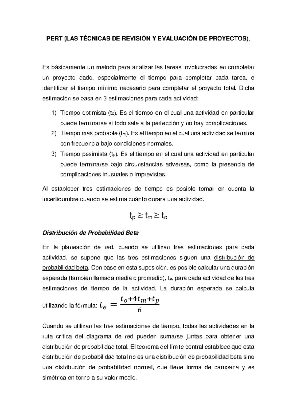El tiempo esperado en Pert es calculado en función a 16426 1229 am ...